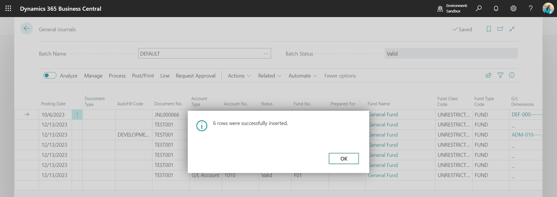 >> Once we click on OK button, the system checks if there are any errors, if there are not the rpws will get inserted in the system.